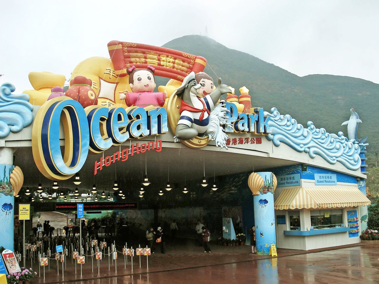 香港海洋公園(Hongkong Ocean Park)位于香港港島南區黃竹坑,占地超過91.5公頃,在1977年1月10日開幕,是一座集海陸動物、機動游戲和大型表演于一身的世界級主題公園,為全球受歡迎、入場人次高的主題公園之一。公園依山而建,分為“高峰樂園”及“海濱樂園”兩大主要景區,以登山纜車和海洋列車連接。2012年,香港海洋公園獲國際游樂園及景點協會博覽會 (IAAPA) 頒發頂尖榮譽大獎“2012 Applause Award”(全球佳主題公園),成為亞洲首間獲得此項殊榮的主題公園。
